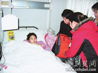 荊楚網(wǎng)消息(楚天都市報)(記者藍海)昨日,湖北日報報業(yè)集團派人前往京山縣人民醫(yī)院看望小楊青,帶去了集團職工的慰問和熱心讀者的祝福,并將募集到的首批4.2萬元捐款交到了她的父親手中。