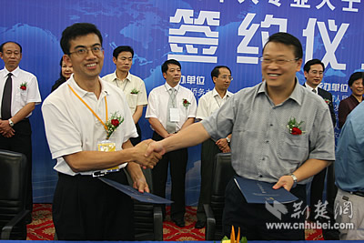荊楚網(wǎng)消息 記者劉暢、姚啟慧報(bào)道:華創(chuàng)會(huì)第一天就掀起了高潮,今天下午在武昌科技會(huì)展中心,來自四面八方的客商頻頻微笑握手,簽下的協(xié)議項(xiàng)目投資總額超過30億元。