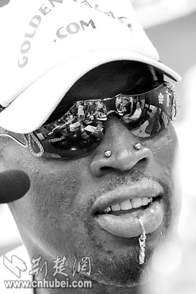 荊楚網(wǎng)消息(楚天都市報(bào))(記者門天清 實(shí)習(xí)生周玥廷 金天)昨日中午,有著8年NBA職業(yè)球員生涯,并擁有6枚NBA總冠軍戒指的前NBA巨星羅德曼一行從上海飛抵武漢,他將參加于今晚在漢舉行的“2005美國(guó)前NBA巨星王朝中國(guó)巡演”第一站的比賽。