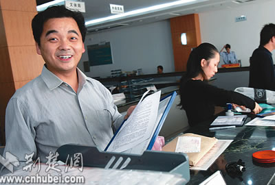 7日,武漢雷泰電力材料有限公司的張紅軍(上圖),僅用20分鐘就在武漢市洪山區(qū)政務(wù)服務(wù)中心辦理完公司的稅務(wù)登記證。他滿臉笑容地說(shuō):“現(xiàn)在辦事方便了,態(tài)度也好了!倍荒昵,辦理同樣一份登記證至少要跑4個(gè)部門,有時(shí)花一星期時(shí)間也不一定能辦妥。