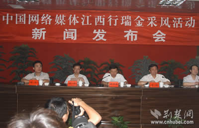 荊楚網(wǎng)消息 記者姚啟慧報道:12日晚,第二屆中國網(wǎng)絡(luò)媒體江西行采訪團(tuán)抵達(dá)共和國搖籃瑞金。13日上午,瑞金市舉行隆重的記者招待會,瑞金市委書記肖毅親自向采訪團(tuán)記者推介紅色故都瑞金,市長楊中茂主持會議。