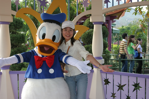 和唐老鴨合個(gè)影一圓童年的夢(mèng)想