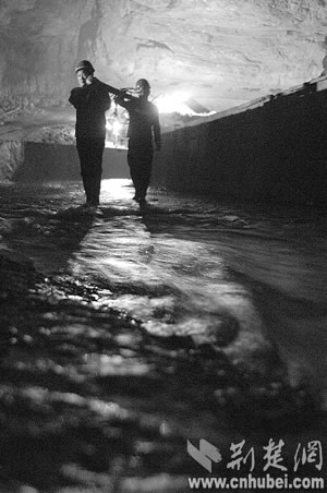 寂寞的蝙蝠第一次接待了人間來客,沉睡萬年的巖溶洞穴第一次迎來了觀者。但黑暗陌生的世界還是讓堂堂男兒們感覺了一絲陰森恐怖。他們曾聽當(dāng)?shù)匕傩諅髡f,洞里有巨蟒,所以至今沒人敢進(jìn)洞。“抓緊時間測量!”來不及恐懼,他們?yōu)樽约汗膭牛驗(yàn)檫@里隨時可能發(fā)生漲水、墜落等危險?上В谝淮谓(jīng)驗(yàn)不足,手電筒的電池很快用完了,一行人只得互相攙扶著,摸索出溶洞。“后來,我們又進(jìn)去了7次,終于測出了暗河的具體位置和流向!狈轿奈湔f。