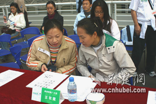 在和王軍霞的交談中得知這是她第二次來武漢,她說她對武漢的印象不錯(cuò),特別是群眾性的健身活動(dòng)。這次在現(xiàn)場看到有這么多的市民自愿來參加健康跑,她覺得很高興和欣慰,因?yàn)樗F(xiàn)在的身份就是健康跑的推廣大使,希望有更多的人參與在這項(xiàng)方便易行的活動(dòng)中去,增加體質(zhì),為國為民為自己。當(dāng)我告訴她是因?yàn)樗牡絹聿盼诉@么多的人來參加活動(dòng)時(shí),她覺得很驚喜!叭绻@樣能吸引更多的人,我想我的付出是值得的!”