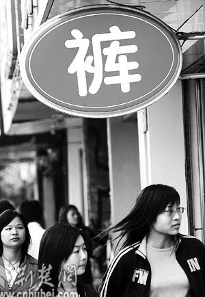 昨日,武漢市江漢路某品牌商店用碩大的“褲”字吸引行人購買欲(圖一)。在市場競爭激烈的今天,“臉面”設(shè)計成為商家費勁腦筋追逐的重心,但也有一些商家長期打著“大甩賣”的旗號欺騙消費者,頗煞風景(圖二)。記者 張鴻 攝