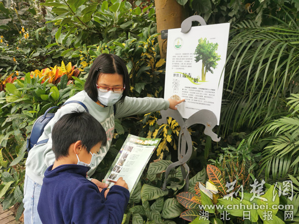 “哇,箭毒木,世界上最毒的樹就是長這樣的嗎?”在千奇百怪、生機勃勃的熱帶雨林,有很多讓人驚奇的植物。武漢植物園科普老師魏妮娜帶領(lǐng)親子家庭走進武漢植物園景觀溫室熱帶雨林室,了解雨林奧秘:“這是龍血樹,會流出褐紅色的汁液。龍血樹是珍貴的藥用植物,是配制活血良藥‘血竭’的主要原料?!彪S后,小朋友發(fā)現(xiàn)一顆大樹的樹干和樹枝上長著鳥巢蕨、蘭花等上10種植物,就像一個“空中花園”。