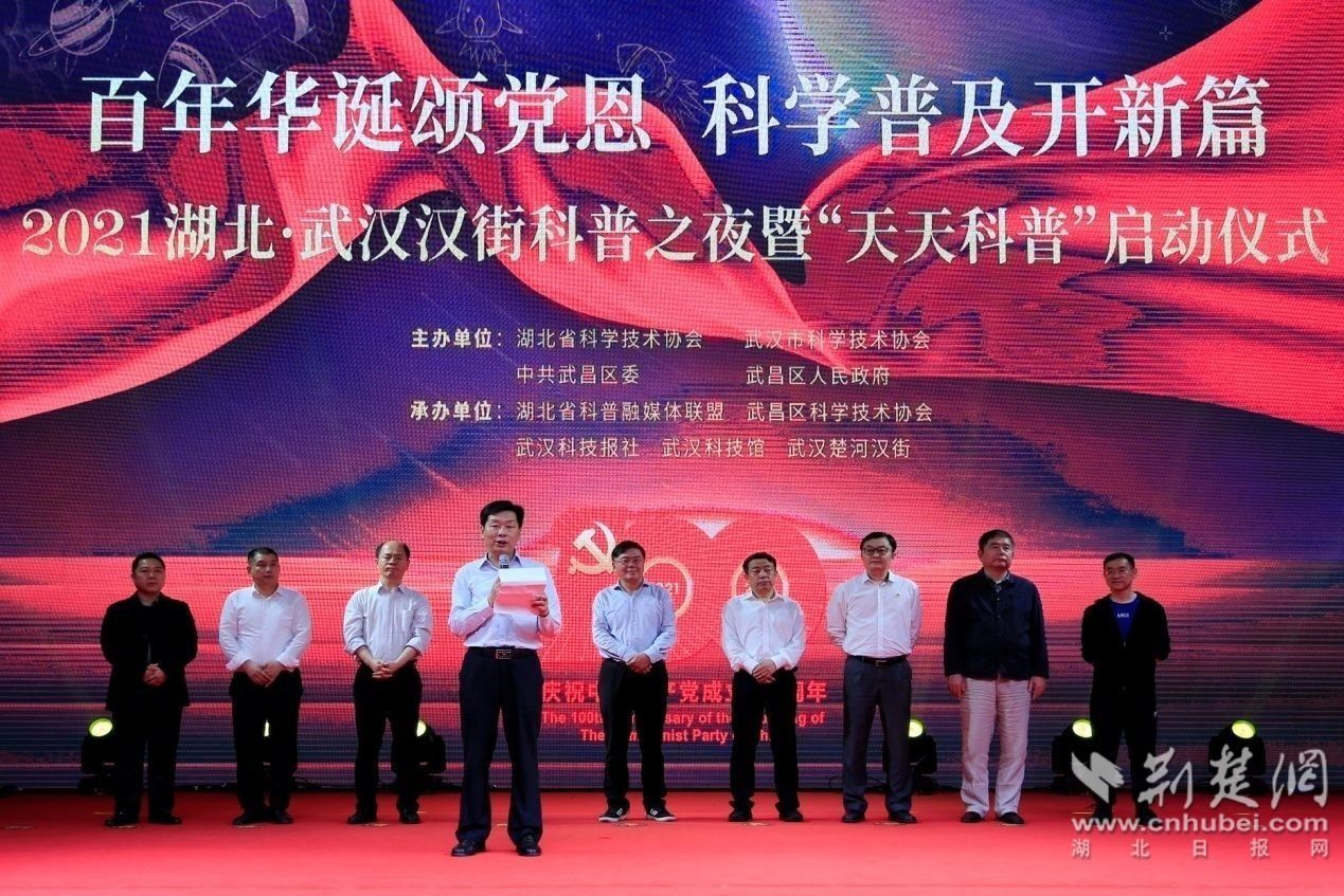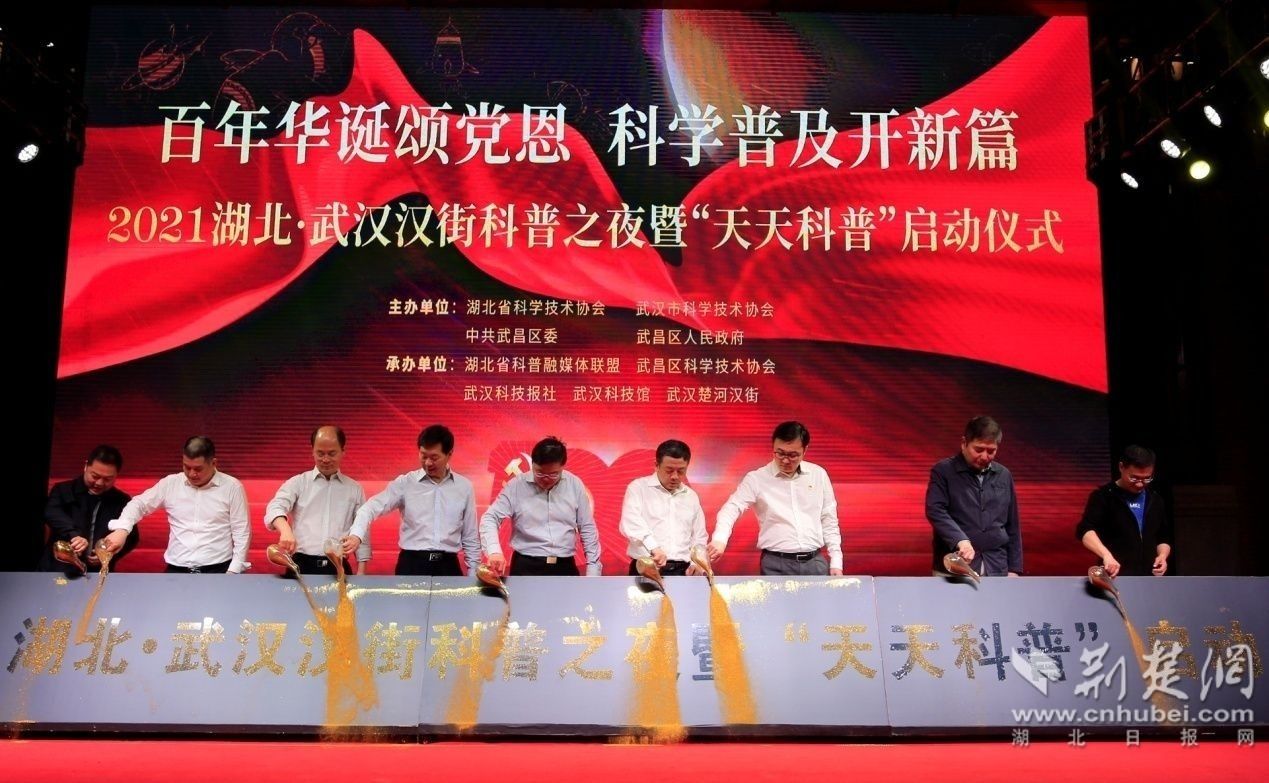 隨后,馬忠星宣布2021湖北?武漢漢街科普之夜暨“天天科普”啟動(dòng),并邀請參加活動(dòng)的嘉賓共同點(diǎn)亮鎏金沙臺(tái)。