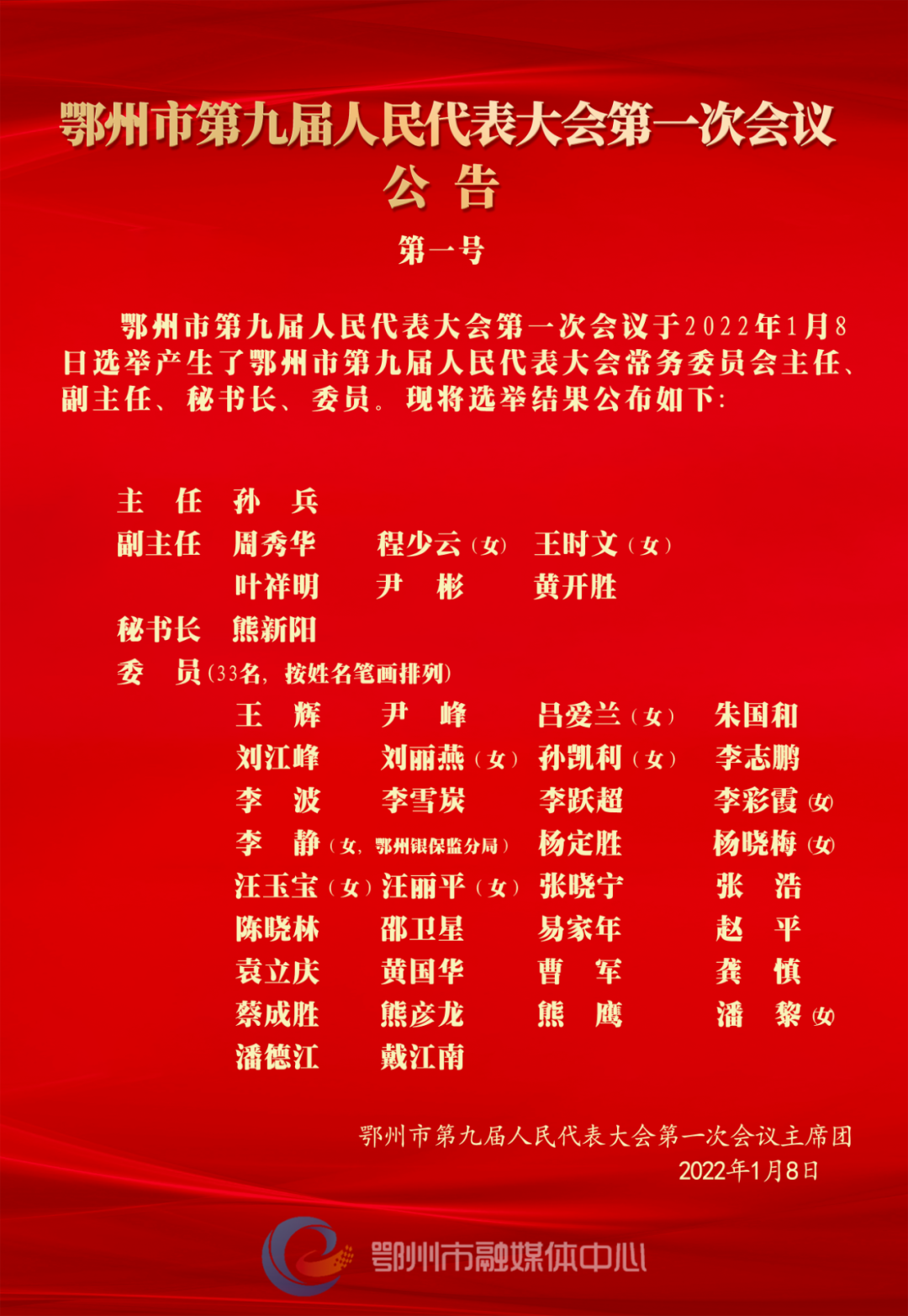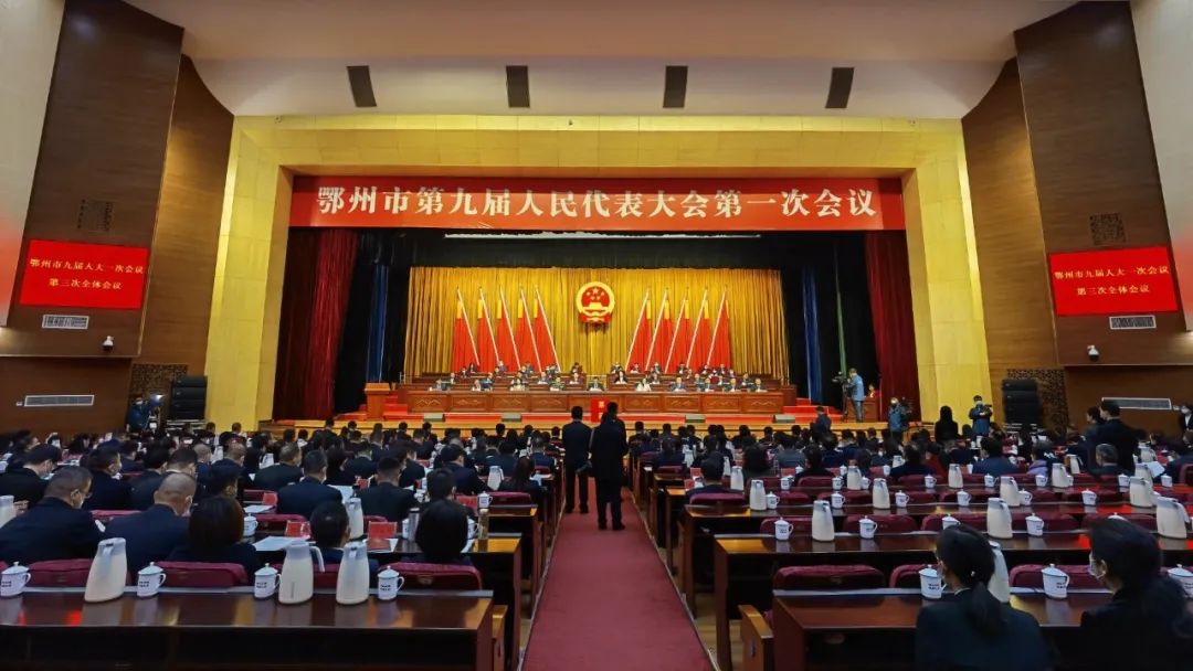 1月8日下午,鄂州市第九屆人民代表大會第一次會議圓滿完成各項議程,在市會議中心勝利閉幕。