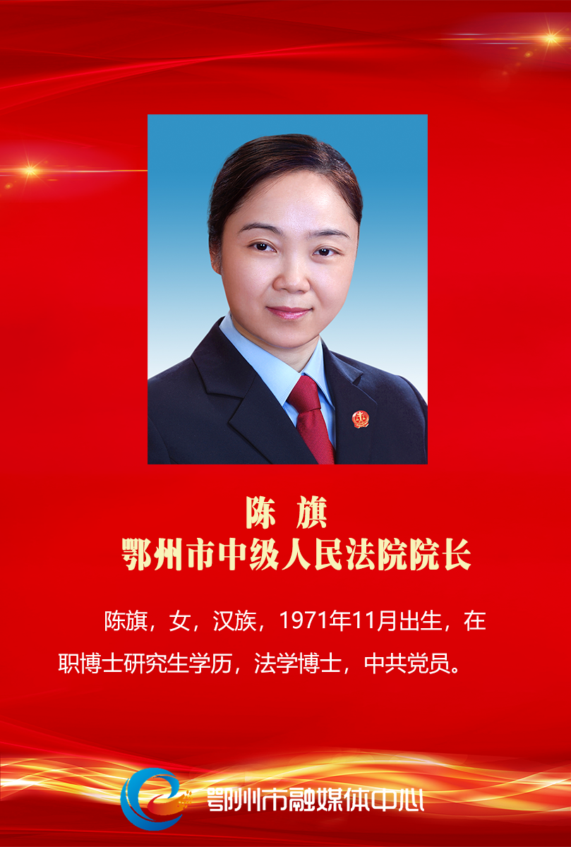 1月8日下午,鄂州市第九屆人民代表大會第一次會議圓滿完成各項議程,在市會議中心勝利閉幕。趙本立當(dāng)選為鄂州市監(jiān)察委員會主任,陳旗當(dāng)選為鄂州市中級人民法院院長,閆利國當(dāng)選為鄂州市人民檢察院檢察長(須報經(jīng)湖北省人民檢察院檢察長提請湖北省人民代表大會常務(wù)委員會批準(zhǔn))。
