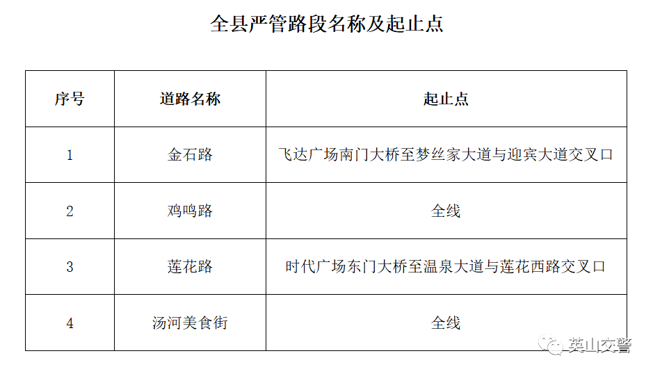通告顯示,一是金石路、雞鳴路、蓮花路、湯河美食街4條道路為機動車違法停車行為嚴格管理路段(簡稱“嚴管路段”),除依法施劃的停車泊位外,全天禁止機動車停放或臨時停車。二是在嚴管路段機動車違法停放或臨時停車的,公安交管部門可以在提醒糾正的同時依法予以處罰。對于經提醒糾正后仍不駛離,妨礙其他車輛、行人通行的,公安交管部門可以依法將其拖移至指定地點停放。