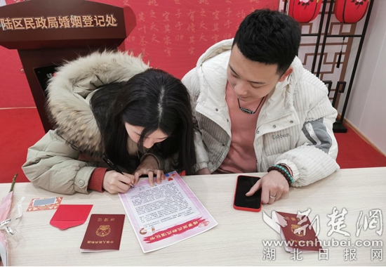據(jù)了解,為應(yīng)對(duì)當(dāng)日可能出現(xiàn)的登記高峰,該區(qū)民政局婚姻登記處通過(guò)網(wǎng)上預(yù)約、提前審核,電話通知預(yù)約新人認(rèn)真遵守疫情防控要求,按時(shí)到場(chǎng)辦理登記;實(shí)時(shí)調(diào)控現(xiàn)場(chǎng)人數(shù),減少登記人員往來(lái)和聚集,確保符合條件的每對(duì)新人都能領(lǐng)到結(jié)婚證。