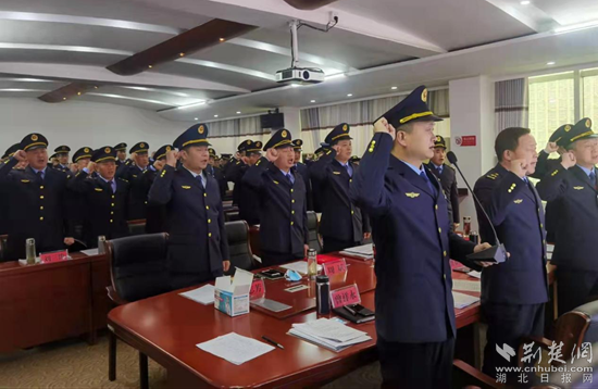 麻城市生態(tài)環(huán)境保護(hù)綜合執(zhí)法大隊(duì)現(xiàn)場(chǎng)宣誓 通訊員供圖