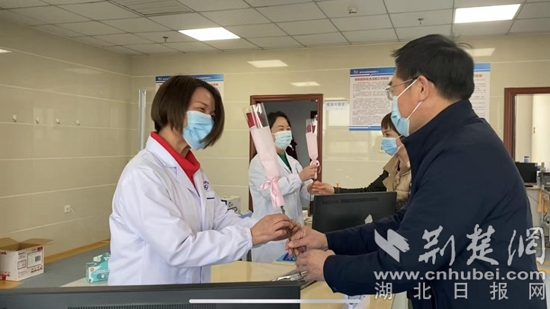 活動(dòng)前,黃岡市疾控中心領(lǐng)導(dǎo)班子及工會(huì)為仍在崗堅(jiān)守的女職工們獻(xiàn)上了鮮花,為她們送去節(jié)日的問(wèn)候和祝福。