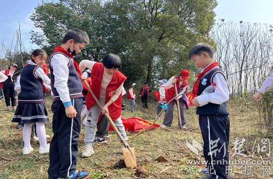 荊楚網(湖北日報網)訊(通訊員 王小忠)3月10日,鄂州市新民街小學師生50余人在學校少工委組織下,來到澤林東佛園藝林場,開展“擁抱春天 播種綠色 放飛希望”義務植樹活動。
