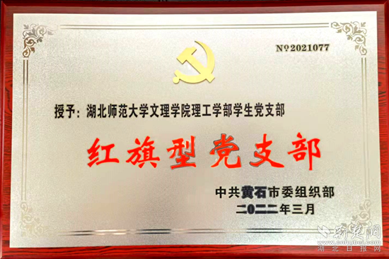 荊楚網(wǎng)(湖北日報(bào)網(wǎng))訊(通訊員 余復(fù)軍)近日,黃石市委組織部下發(fā)通報(bào),表彰2021年度全市先進(jìn)黨組織。其中,湖北師范大學(xué)文理學(xué)院理工學(xué)部學(xué)生黨支部被評為黃石市2021年度“紅旗型黨支部”。