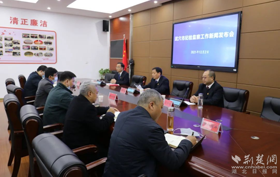 武穴市召開紀檢監(jiān)察工作新聞發(fā)布會現(xiàn)場。通訊員 供圖