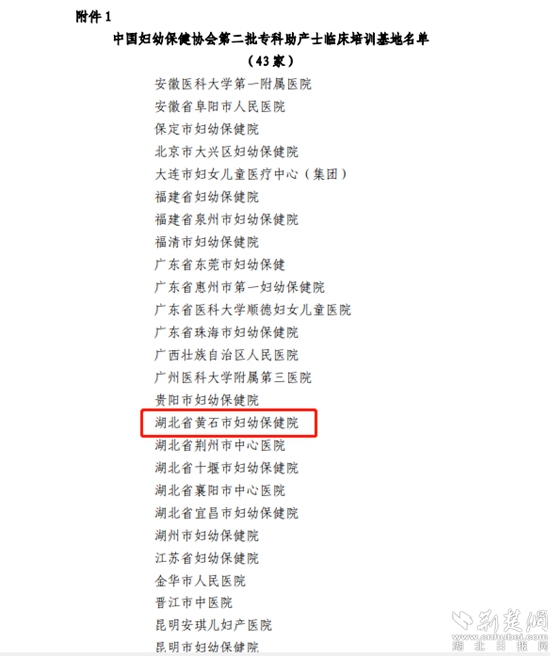 荊楚網(wǎng)(湖北日報(bào)網(wǎng))訊(通訊員 王沁、張姣姣)3月23日,中國婦幼保健協(xié)會公布“第二批專科助產(chǎn)士臨床培訓(xùn)基地”名單,黃石市婦幼保健院名列其中,正式成為“中國婦幼保健協(xié)會??浦a(chǎn)士臨床培訓(xùn)基地”,標(biāo)志著黃石市婦幼保健院??浦a(chǎn)士臨床培訓(xùn)工作邁上新臺階。