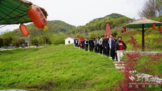 在希爾寨生態(tài)農莊,大家饒有興致地觀看了獨具匠心的“同心林·石榴園”,正逢春天,草木蔓發(fā),生機盎然,此時的希爾寨生態(tài)農莊儼然成為一片花的海洋,櫻花、桃花、紫荊花、海棠花、玉蘭花爭奇斗艷,競相開放,更有戀橋的別致、涵山堂的典雅、桃花島的悠然、九間堂的飄逸……自然景觀和人文景觀有機地融合在一起,別有一番韻味。人群中,頓時傳來了一句響亮的口號:花團錦簇希爾寨、同心同行向未來!