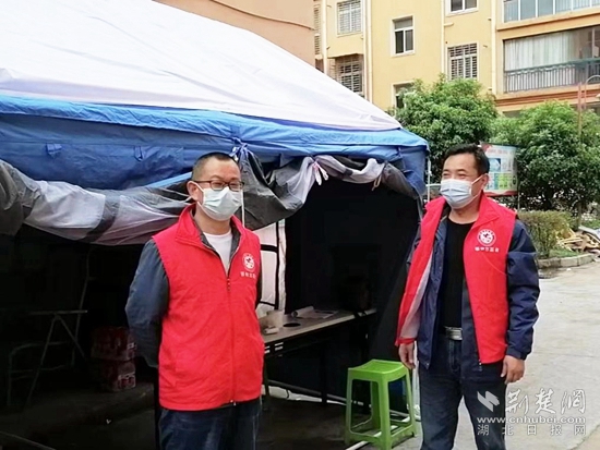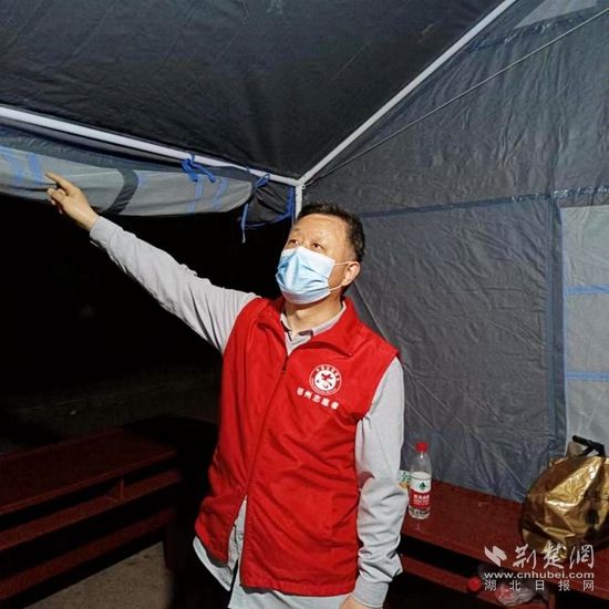 4月12日,實施靜態(tài)管理的第三天,鄂州天氣突變,氣溫驟降十余度。樊友明和羅福齊一同負責當晚的夜班,夜里風雨交加,臨時搭建的帳篷有些不穩(wěn)固,在風雨中飄搖。雨越下越大,帳篷開始漏水,倆人幾乎一宿沒睡。第二天早上,幫助加固好帳篷,樊友明才匆匆離開。