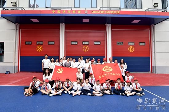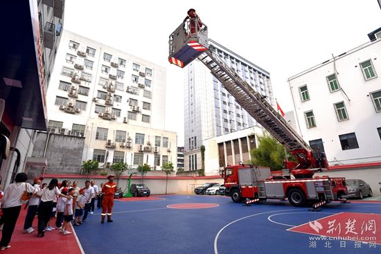 活動中,消防員帶領來自黃石市廣場路小學的40余名學生和老師參觀了各類消防車輛和器材裝備,詳細介紹了不同車輛、器材的功能和用途。