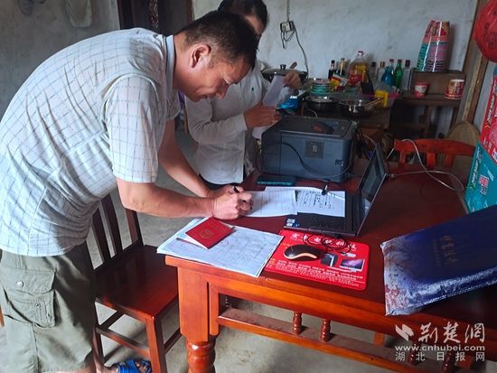 荊楚網(wǎng)(湖北日報網(wǎng))訊(通訊員 方俊 徐亞洲)6月1日,在浠水縣汪崗鎮(zhèn)尖山廟村二組,汪崗鎮(zhèn)退役軍人優(yōu)待證申辦工作專班人員攜帶電腦、打印機等設備,來到村民馬亞軍家中現(xiàn)場辦公,幫助其辦理退役軍人優(yōu)待證的申請。