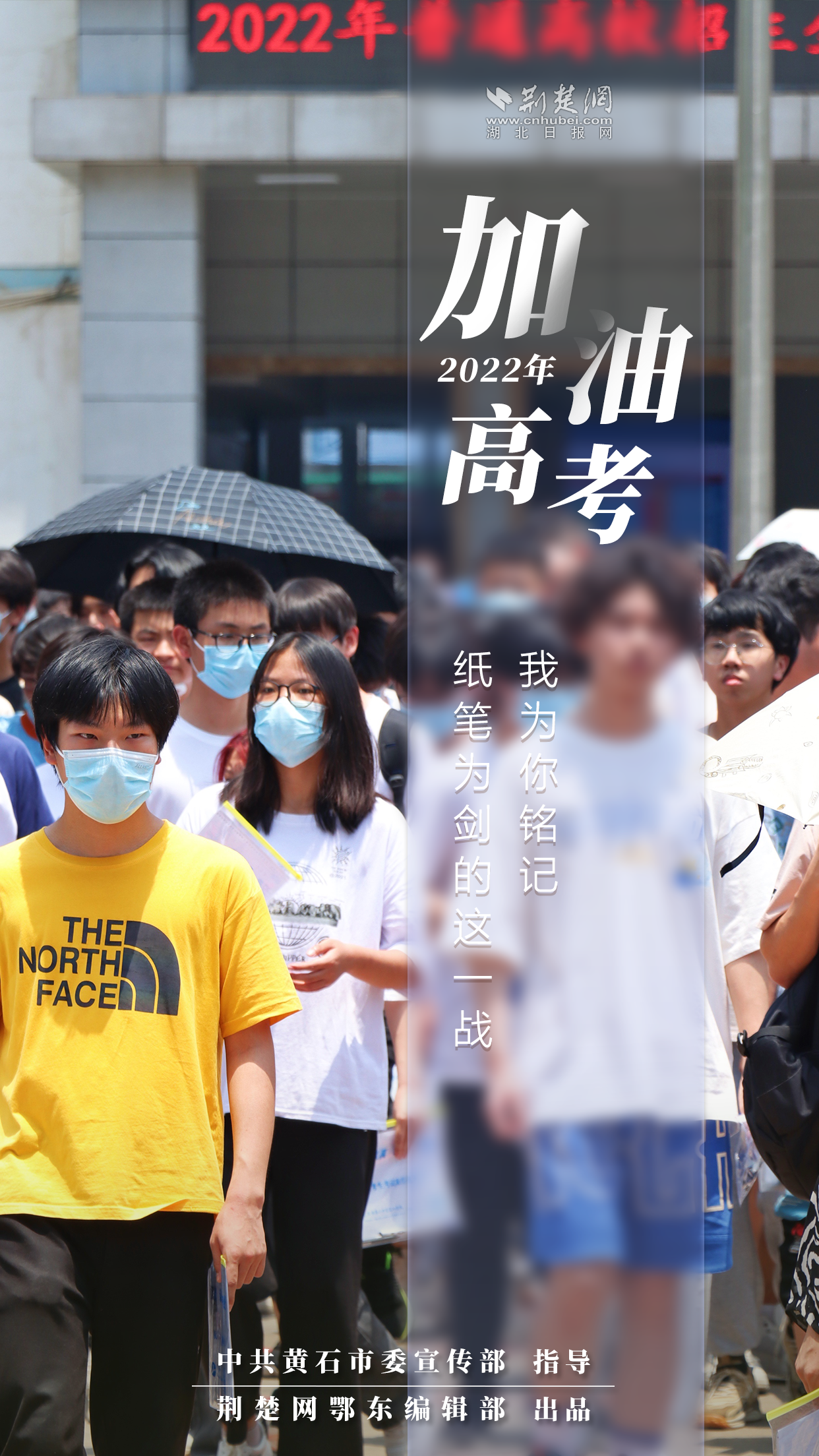 6月7日,一年一度的全國高考拉開大幕??紙鰞?nèi),黃石的學(xué)子們奮筆疾書,用生花妙筆為自己的“成年禮”加冕;考場外,家長們默默祈禱,愛心人士默默守護(hù),整座城市在無聲吶喊——“加油,2022年高考!”