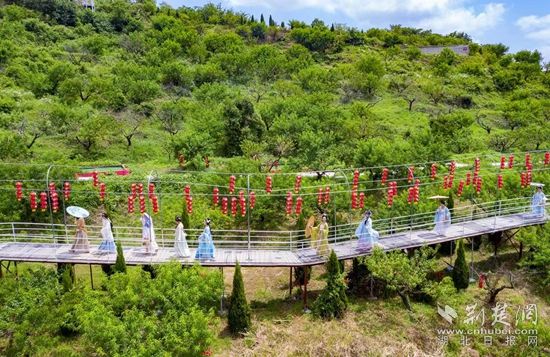 “哇,好多漢服小姐姐!”當日,在美麗的沼山鄉(xiāng)村公園,十余位漢服少女手提果籃,裙帶飄飄,從桃園的小道漫步而來,成為一道行走的風景線。