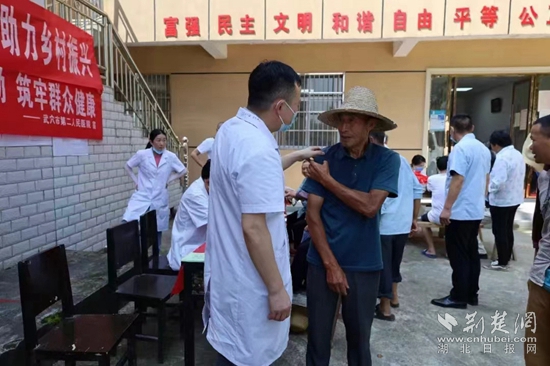 康復(fù)科醫(yī)務(wù)人員在梅川鎮(zhèn)劉昌村開展義診活動(dòng)。通訊員 供圖