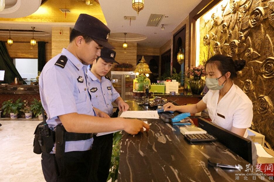 民警在網(wǎng)吧檢查。 秦浩攝
