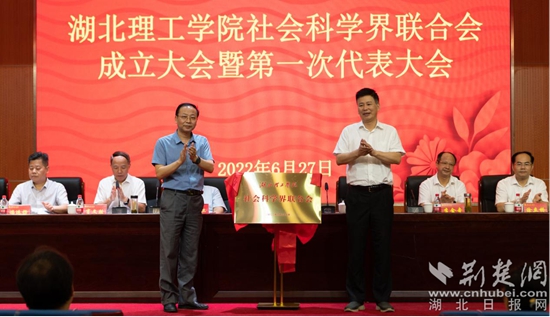 王其濤、李社教共同為“湖北理工學(xué)院社會(huì)科學(xué)界聯(lián)合會(huì)”揭牌。通訊員 供圖