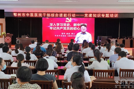 荊楚網(湖北日報網)訊(通訊員 姚周君)6月28日下午,鄂州市中醫(yī)醫(yī)院慶祝建黨101周年暨黨建知識專題培訓會議在門診八樓會議室隆重召開,院領導班子成員、全體黨員、入黨積極分子及中層干部140余人參加。會議由院長熊前榮同志主持。