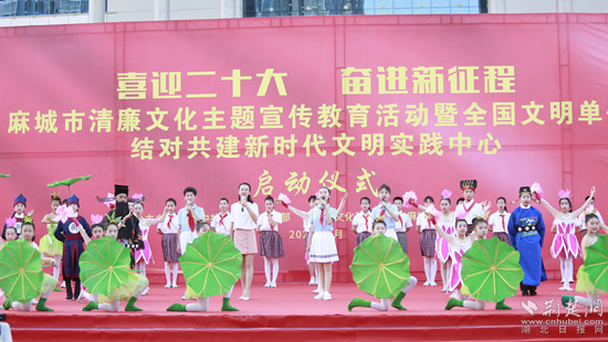 荊楚網(wǎng)(湖北日報(bào)網(wǎng))訊(通訊員謝靖)“濯濯清漣,亭亭清蓮,一品清廉,愛蓮,更贊廉?!?月29日,在麻城市清廉文化宣傳教育活動暨全國文明單位結(jié)對共建啟動儀式上,麻城市實(shí)驗(yàn)二小的情景劇《一品清廉》傳來聲聲清脆的倡廉之聲,贏得現(xiàn)場觀眾陣陣掌聲。