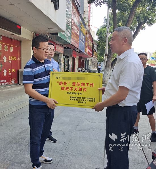 荊楚網(wǎng)(湖北日報網(wǎng))訊(通訊員 許俊孝)陽新縣城管局7月22日表示,為著力構(gòu)建城市共建共管、全民共創(chuàng)共享工作新格局,助力新型城鎮(zhèn)化示范縣建設(shè)和國家文明城市創(chuàng)建,陽新縣對“路長”和“門前三包”兩項城市眾管工作機(jī)制責(zé)任單位實施“黃牌”警示制度。目前,已有4家單位因連續(xù)兩個月考核不達(dá)標(biāo)“榮獲”此牌,并掛牌督辦,另有六家單位獲得“示范單位”金牌榮譽(yù)。