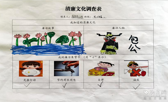 據了解,該園創(chuàng)新“紅色教育+清廉教育”模式,將“農耕文化”和廉政文化相互滲透,加強師生勤儉節(jié)約、自律誠實的良好行為品德,推動廉潔文化和紅色文化走深走實。通過開展清廉手抄報評選、向幼兒分發(fā)《清廉文化調查表》讓孩子用“童眼看清廉”、開展“清風拂童心 廉潔伴幼行”系列廉潔教育活動,利用正向激勵、反面警示的方式,引導全園師生從點滴做起,弘揚社會主義核心價值觀,筑牢反腐倡廉防線,合力推進“清廉學?!苯ㄔO。