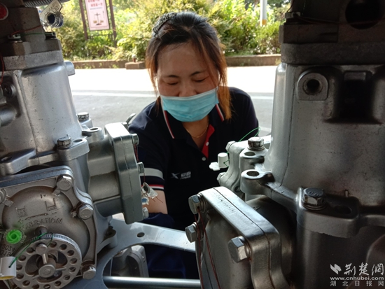 白塔巖站站長胡慧妍檢查加油機。通訊員 供圖