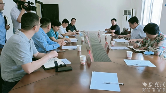 黃岡市委組織部、市商務(wù)局領(lǐng)導(dǎo)與羅田縣委書(shū)記及相關(guān)部門(mén)負(fù)責(zé)人共同商量對(duì)策,解決企業(yè)面臨的“違約”難題。通訊員供圖