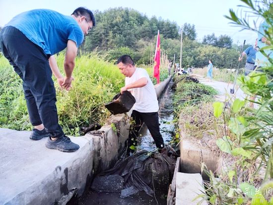 8月15日,窯上咀村窯魯大畈人頭攢動,在鎮(zhèn)黨委的組織下,由3個支部的黨員、群眾組成的清渠專班正配合著挖掘機施工作業(yè)?!叭罕娦枰裁?,我們黨員就干什么?!秉h員郭亞榮說。大家手揮舞著鐮刀、鋤頭、鐵鍬、鋼叉等農具,割草、清溝、排淤、除沙分工有序、各司其責。