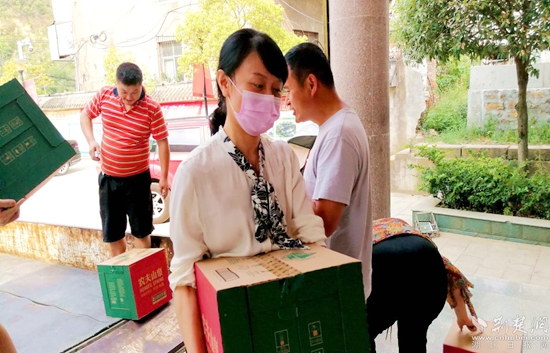 為高溫缺水的村民送去礦泉水。通訊員 供圖