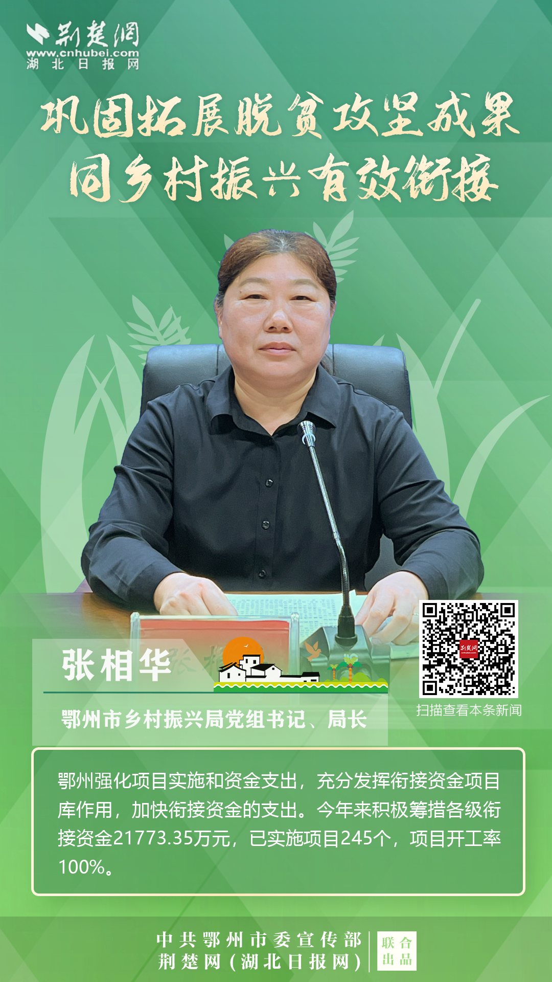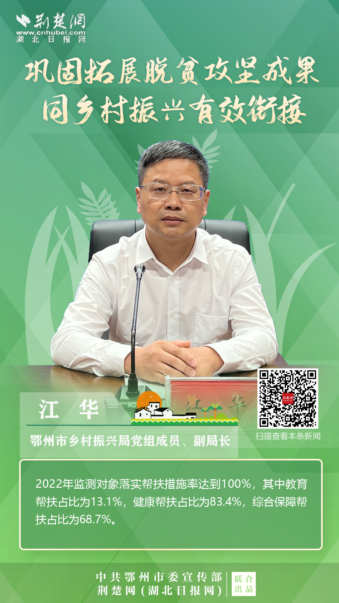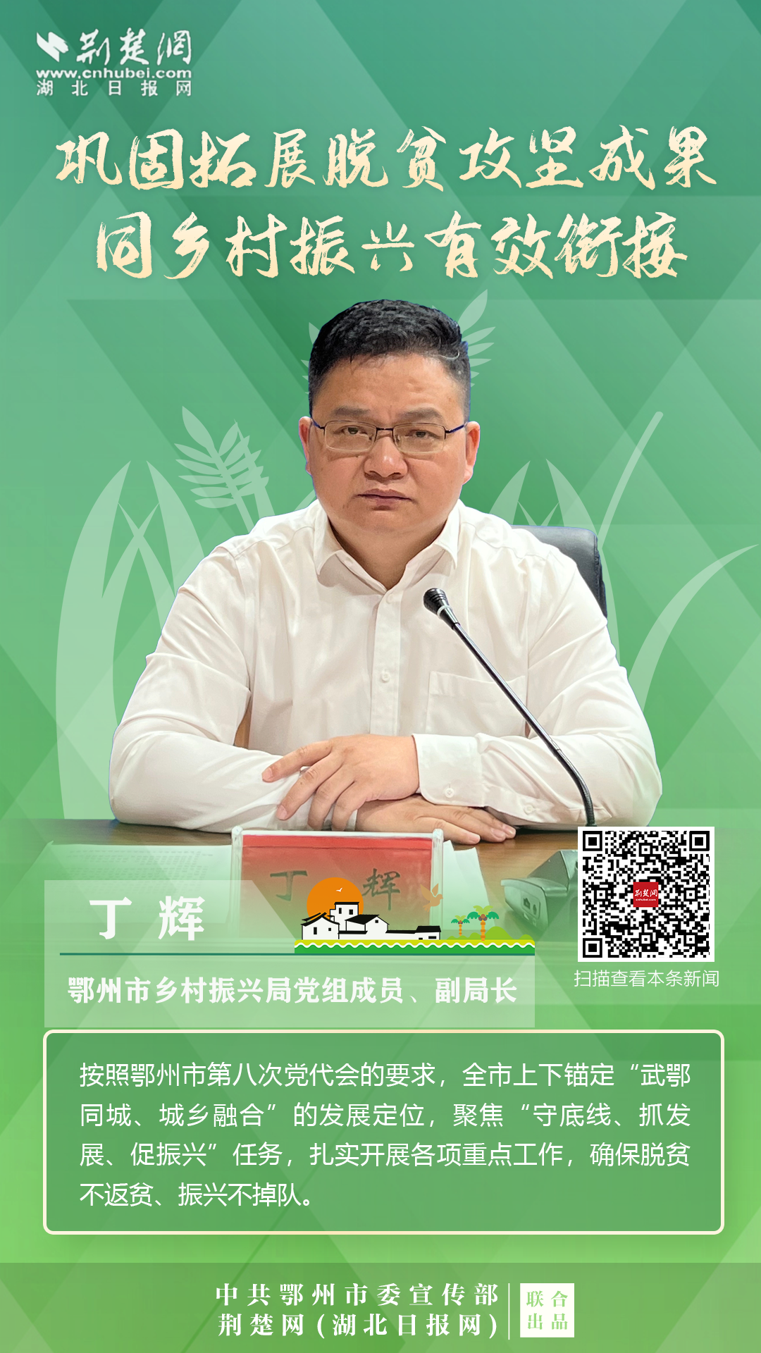 打贏脫貧攻堅戰(zhàn)以來,按照鄂州市第八次黨代會的要求,全市上下錨定“武鄂同城、城鄉(xiāng)融合”的發(fā)展定位,聚焦“守底線、抓發(fā)展、促振興”任務,扎實開展各項重點工作,確保脫貧不返貧、振興不掉隊。