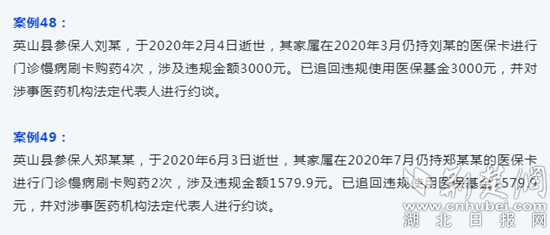 荊楚網(wǎng)(湖北日?qǐng)?bào)網(wǎng))訊(記者 金康)9月1日,英山縣醫(yī)療保障局曝光“三假”案列,49名逝世者家屬仍持死者醫(yī)??ㄟM(jìn)行門(mén)診慢病刷卡購(gòu)藥。目前,該局已全部追回違規(guī)使用醫(yī)保基金,并對(duì)涉事醫(yī)藥機(jī)構(gòu)法定代表人進(jìn)行約談。