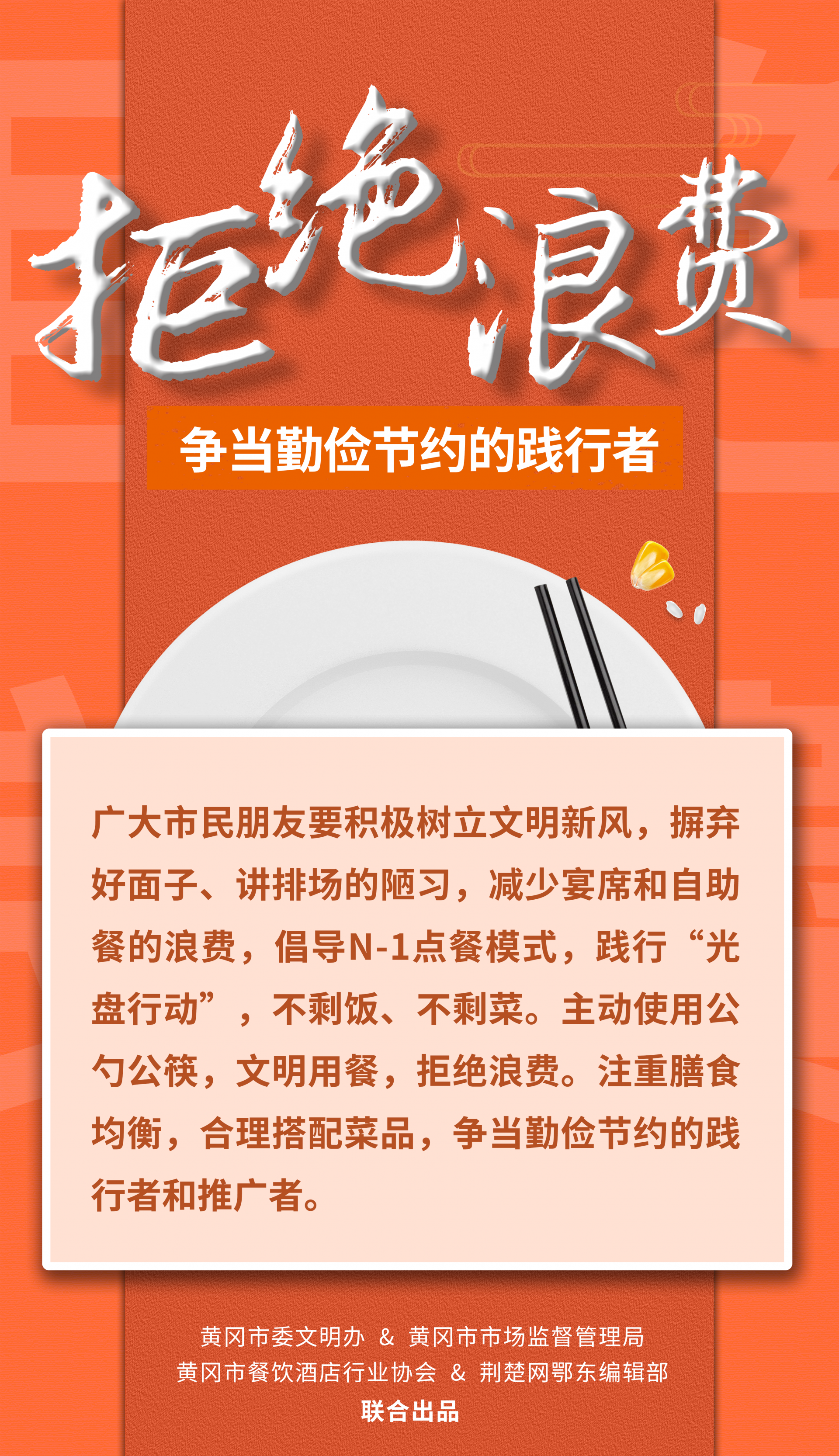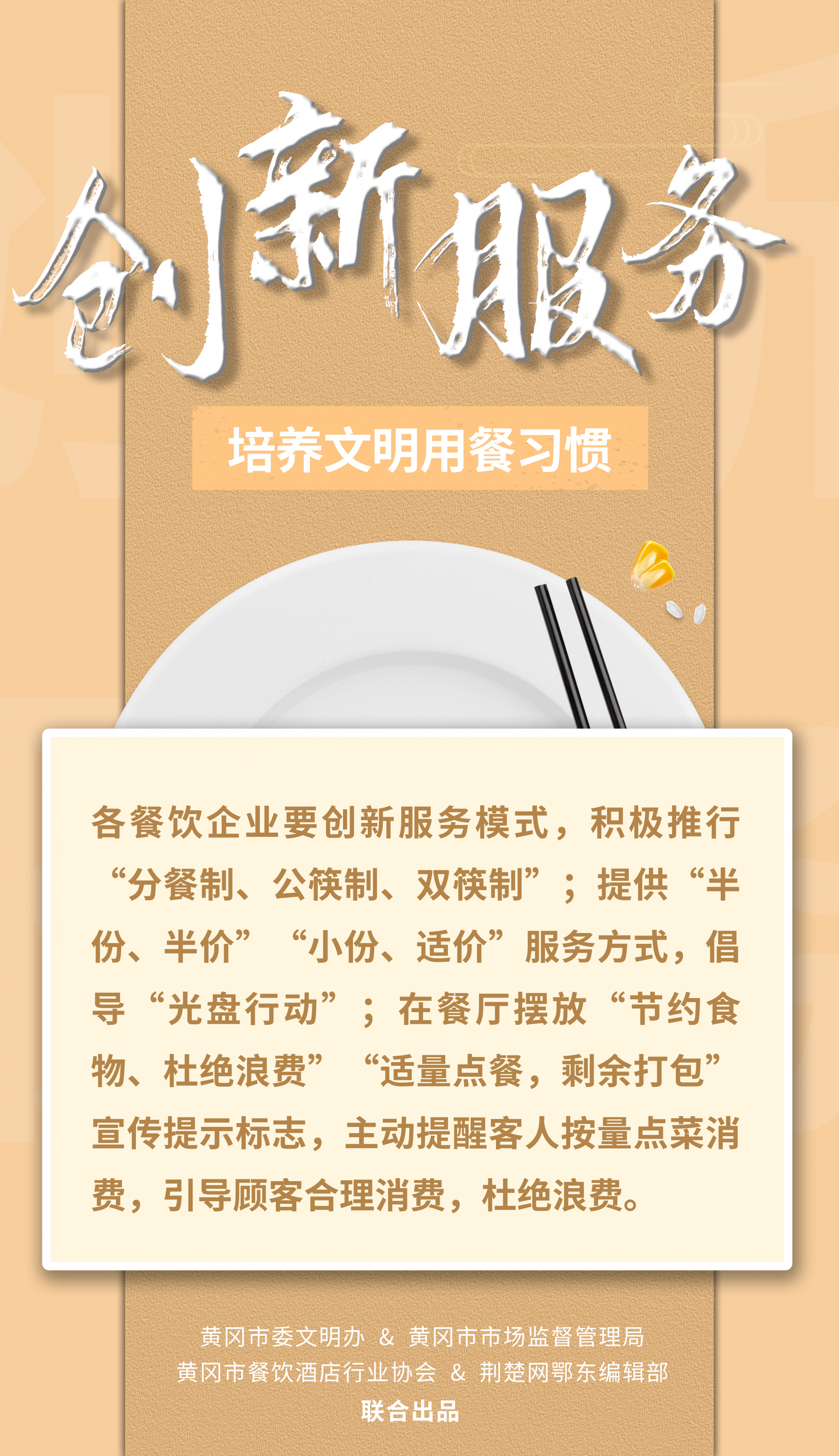 荊楚網(wǎng)(湖北日報網(wǎng))訊(記者陶輝 姜夢瑤 通訊員張開宇 姜文馨)一粥一飯,當思來之不易。為引導餐飲行業(yè)健康綠色發(fā)展,踐行“文明用餐、反對浪費”時代新風,堅決制止餐飲浪費行為,9月14日,黃岡市委文明辦、黃岡市市場監(jiān)督管理局、黃岡市餐飲酒店行業(yè)協(xié)會聯(lián)合向全市餐飲行業(yè)、廣大市民朋友發(fā)出倡議。