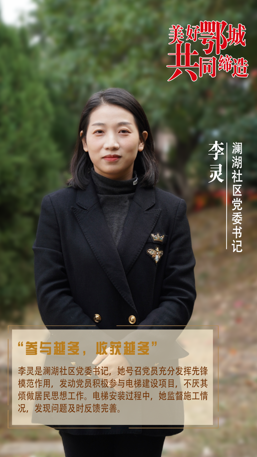 李靈是瀾湖社區(qū)黨委書記,她號召黨員充分發(fā)揮先鋒模范作用,發(fā)動黨員積極參與電梯建設(shè)項目,不厭其煩做居民思想工作。電梯安裝過程中,她監(jiān)督施工情況,發(fā)現(xiàn)問題及時反饋完善。