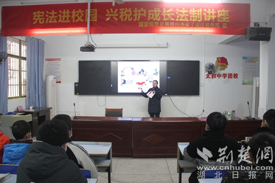 荊楚網(wǎng)(湖北日報(bào)網(wǎng))訊(通訊員 談恩維)12月1日,在國家憲法日來臨之際,梁子湖區(qū)稅務(wù)局普法宣傳隊(duì)在太和中學(xué)開展憲法宣講進(jìn)校園活動。