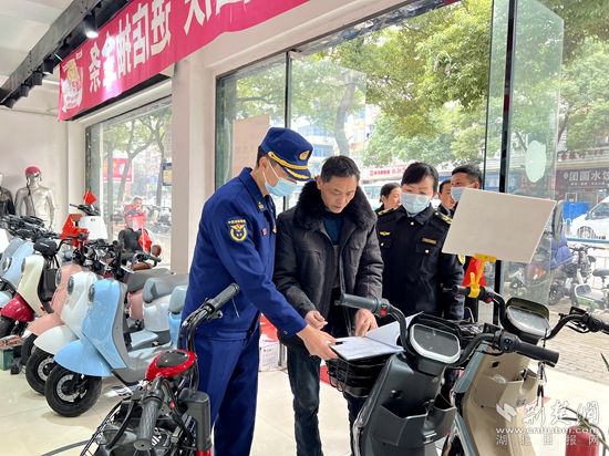 荊楚網(wǎng)(湖北日報網(wǎng))訊(通訊員盧雅婕)為加強(qiáng)電動自行車銷售領(lǐng)域安全管理,12月7日,黃石市黃石港區(qū)消防救援大隊聯(lián)合市場監(jiān)督管理局對電動自行車經(jīng)營場所安全隱患開展專項排查整治。