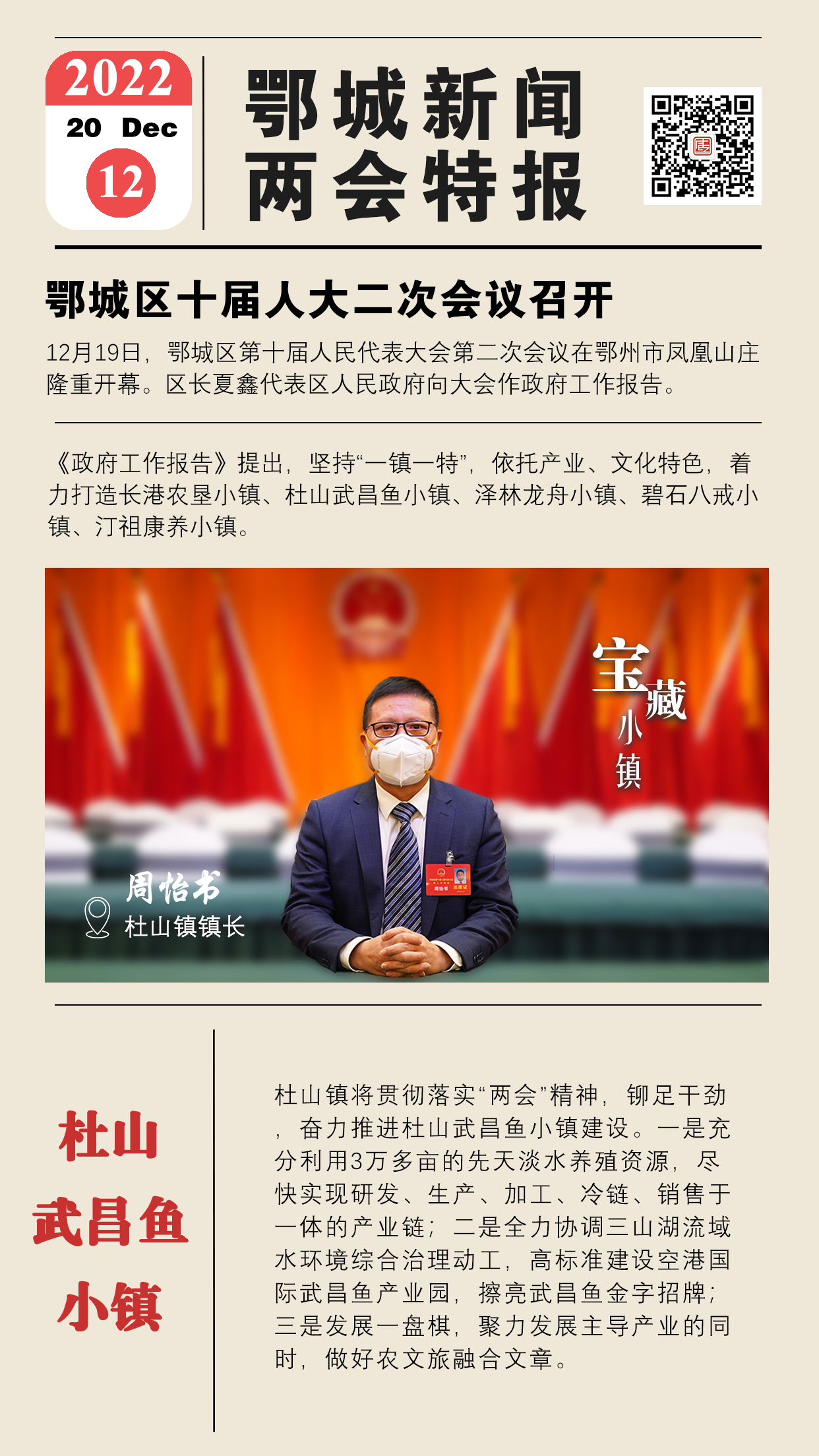 杜山鎮(zhèn)將貫徹落實(shí)“兩會(huì)”精神,鉚足干勁,奮力推進(jìn)杜山武昌魚(yú)小鎮(zhèn)建設(shè)。