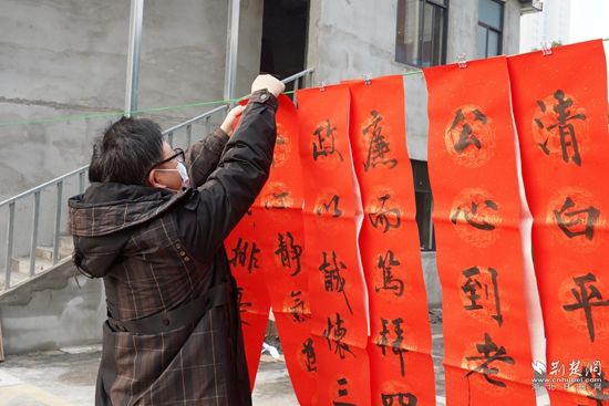 翰墨飄香,迎春納福。3名書法家現(xiàn)場潑墨揮毫,寫春聯(lián)、送福字。“一身正氣敢碰硬,兩袖清風(fēng)不染塵”,通過寫“廉”聯(lián),讓新年更添風(fēng)清氣正之色。民間藝術(shù)家們帶來音樂快板《竹板聲聲頌清廉》和廉政楚劇《門道》,在一聲聲“廉”板和“廉”戲聲中,為群眾、干部帶來廉潔文化洗禮。最后,一場老少皆宜的《踩蓮船》表演,讓現(xiàn)場觀眾捧腹大笑、樂不可支。
