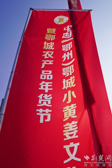 醒目的年貨節(jié)旗幟。金康 攝
