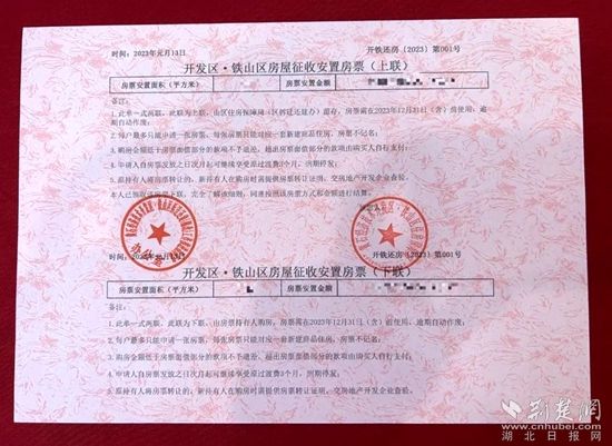 “這是我區(qū)年初推出試行房票安置制度后發(fā)放的首張房票,也是全市首張房票。”開發(fā)區(qū)·鐵山區(qū)住房保障局開發(fā)科科員王哲介紹,通過房票安置方式,一方面縮短了拆遷群眾安置時間,另一方面拓寬了安置房源,打通住房轉(zhuǎn)換通道后,拆遷群眾可以根據(jù)個人需求購買心儀的商品房用來安置,選擇范圍更大了、居住環(huán)境更好了、生活品質(zhì)更高了。
