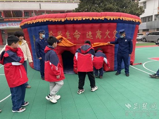 在消防員的幫助下,他們穿上消防服、戴上消防帽、手持滅火器,變身為“小小消防員”,參與模擬滅火;他們積極列隊(duì),有序鉆進(jìn)模擬煙室,鞏固了火場(chǎng)逃生知識(shí)。