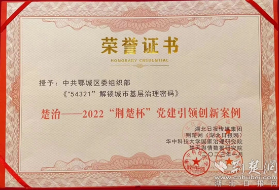 2022“荊楚杯”黨建引領(lǐng)創(chuàng)新案例榮譽(yù)證書。通訊員 供圖
